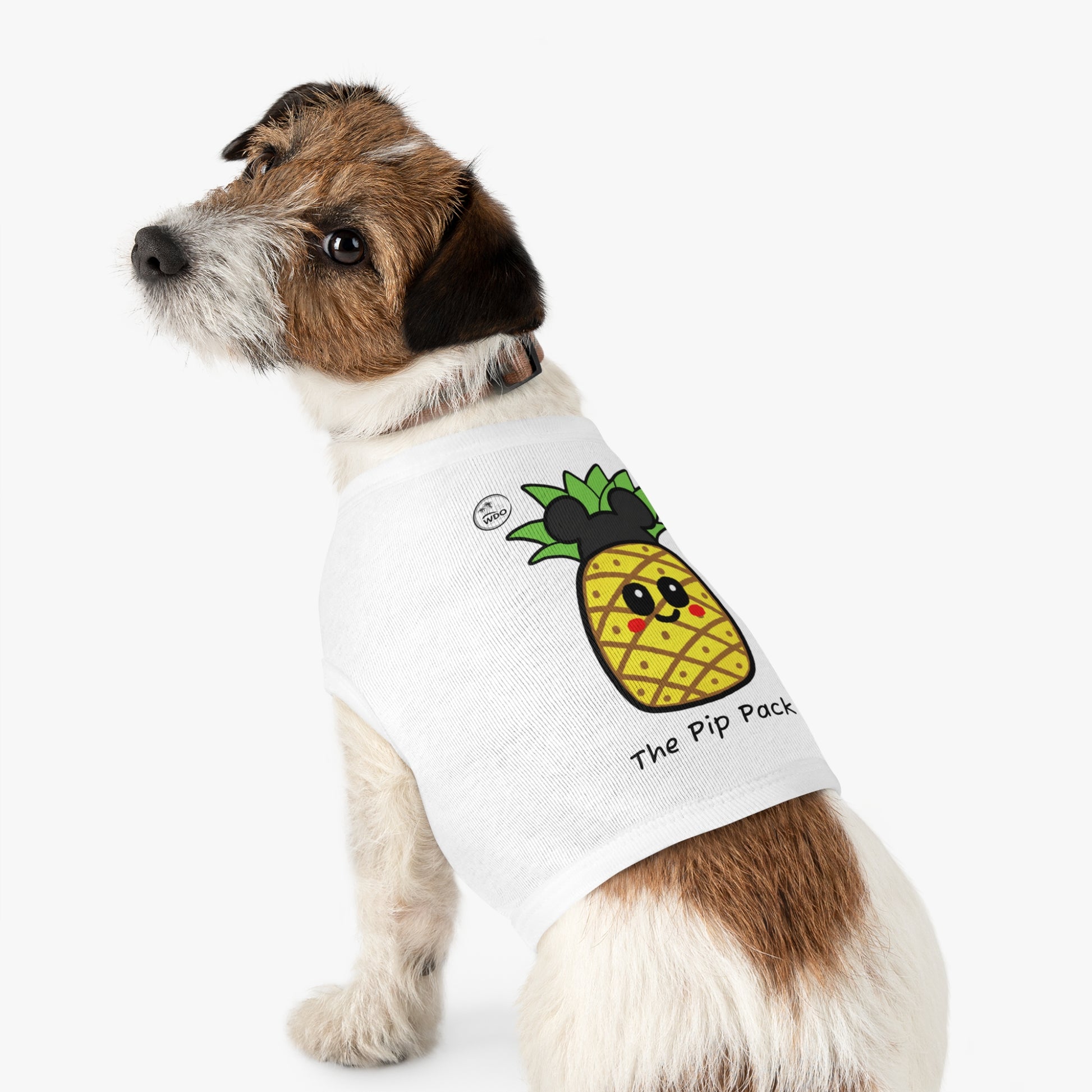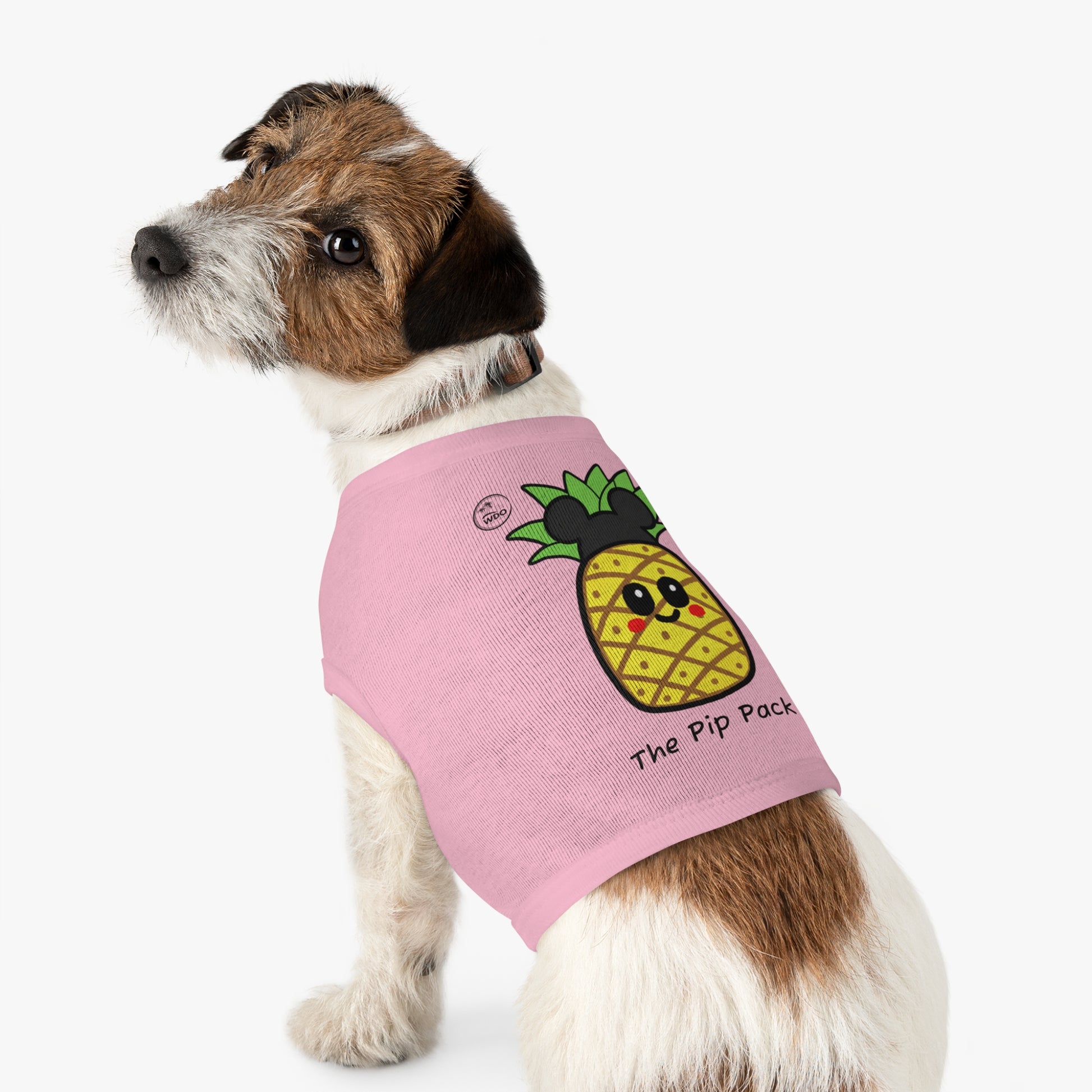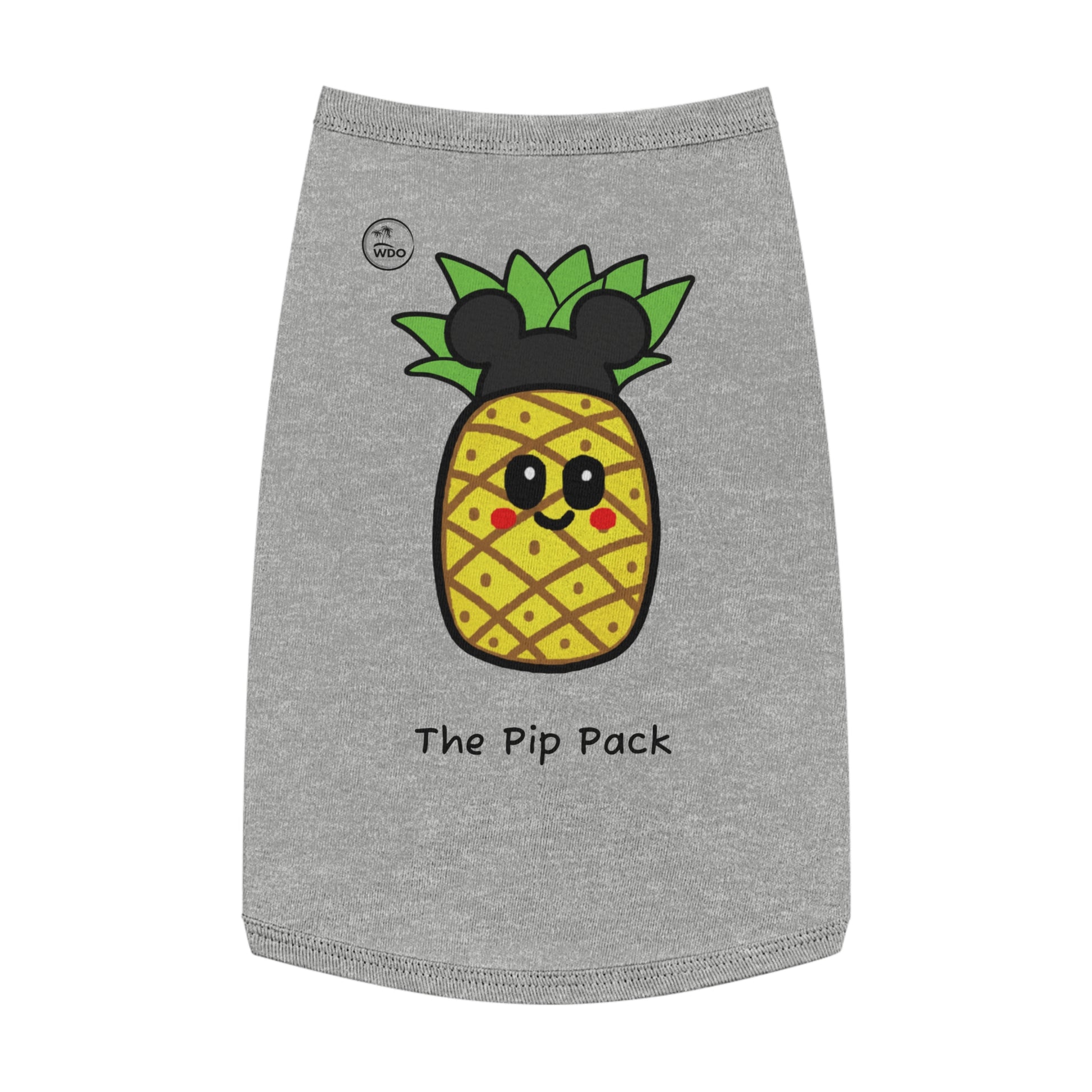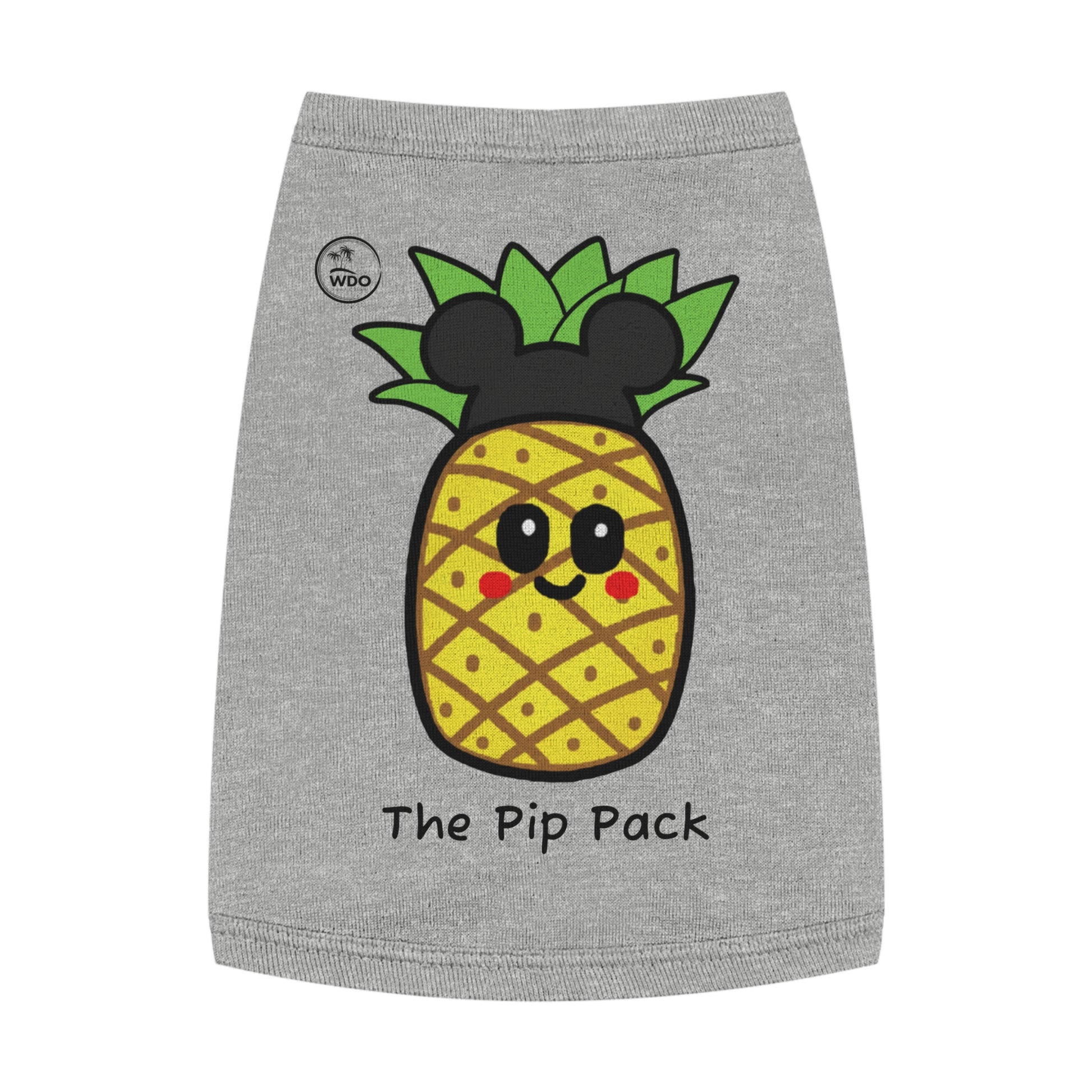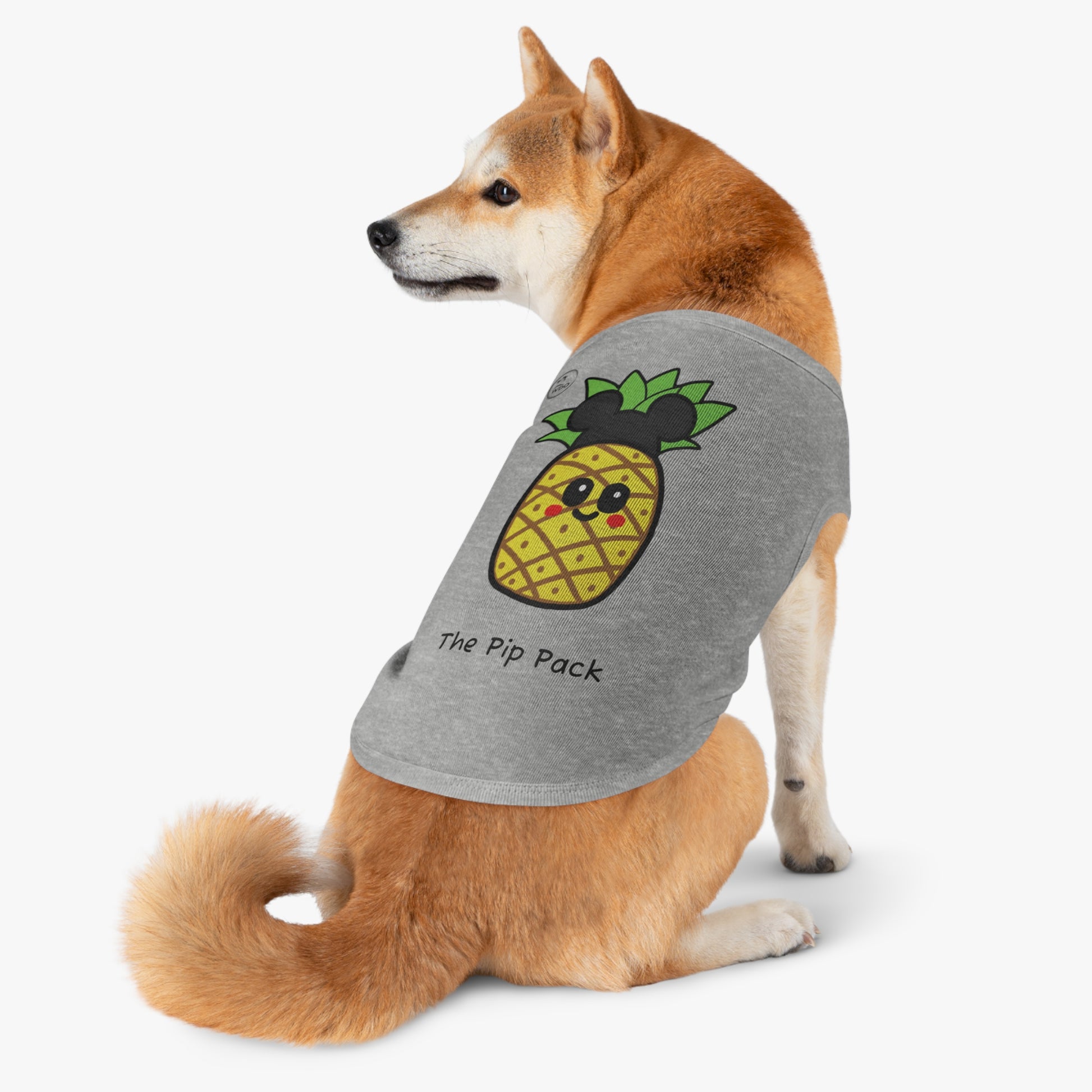 Now your furry family member can join the fun with our brand-new Pip the Pineapple dog shirt! Perfect for a walk in the park, a cozy day in, or a puppy playdate, these adorable shirts feature our sweet, kawaii pineapple mascot. They're made from a soft, stretchy, and breathable fabric to keep your pup comfy and stylish all day long. It’s perfect for pet lovers and their four-legged friends, and makes an excellent gift for pet birthdays, holidays, or just because! Whether it's summertime or a festive occasion, this tank top is a must-have for making memories with your beloved pet.